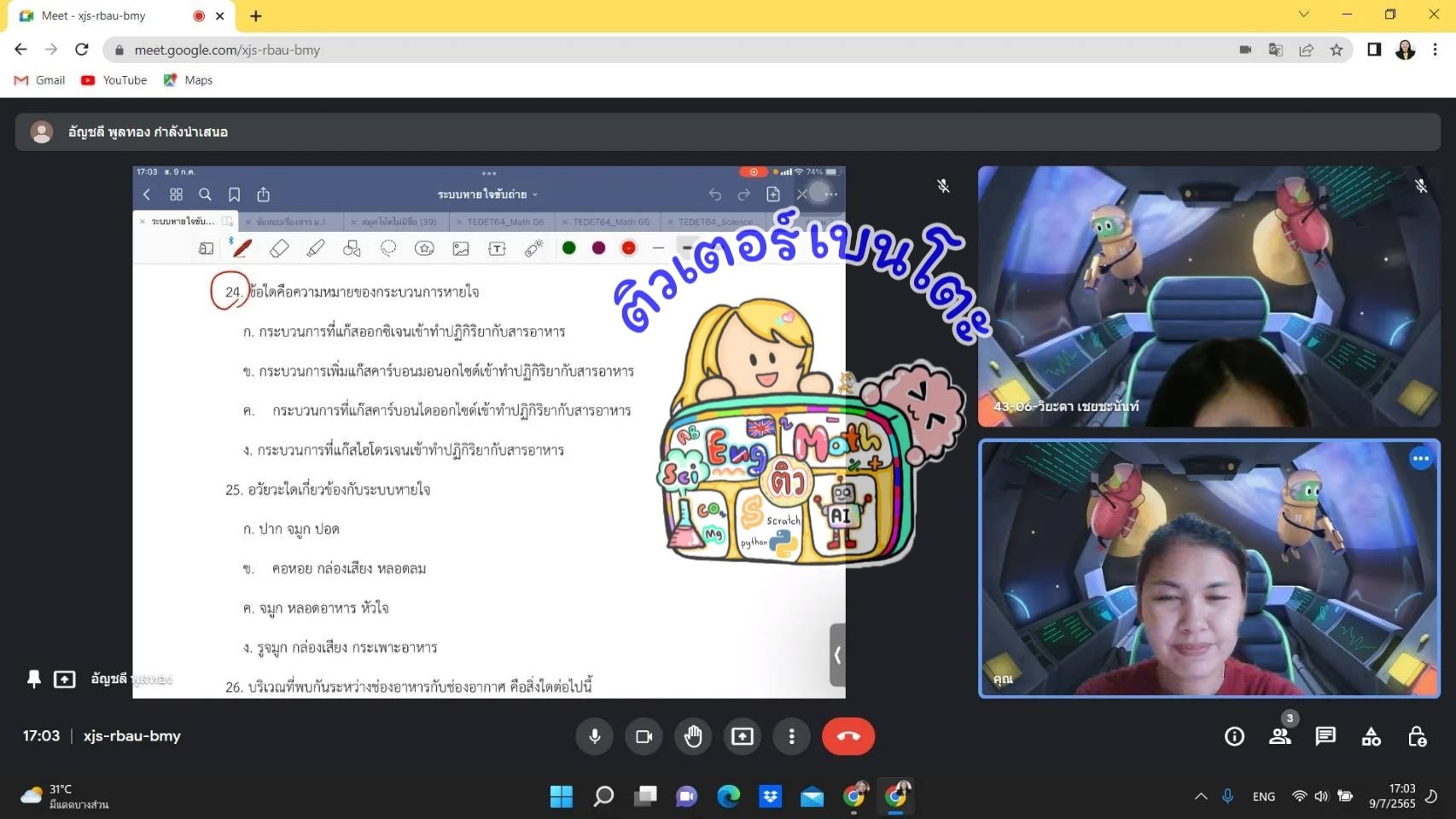 ได้ฝึกทำข้อสอบ น้องทำได้ และสามารถบอกกลไกการหายใจได้ บอกถึงความสัมพันธ์ของระบบหายใจดับระบบต่างๆได้ และเข้าใจถึงการหายใจแล้วทำให้เกิดพลังงานค่ะ